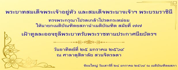 พิธีพระราชทานประกาศนียบัตรเนติบัณฑิต สมัยที่ 77 ปีการศึกษา 2567 (กำหนดการของเนติบัณฑิต ขั้นตอนการปฏิบัติในการเข้ารับพระราชทานประกาศนียบัตร ระเบียบการแต่งกายและข้อห้ามต่าง ๆ และคำปฏิญาณตนของเนติบัณฑิต)