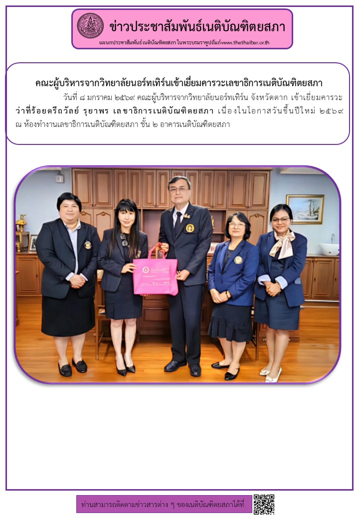 คณะผู้บริหารจากวิทยาลัยนอร์ทเทิร์นเข้าเยี่ยมคารวะเลขาธิการเนติบัณฑิตยสภา