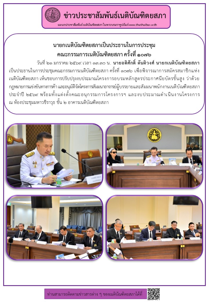 นายกเนติบัณฑิตยสภาเป็นประธานในการประชุมคณะกรรมการเนติบัณฑิตยสภา ครั้งที่ 1076