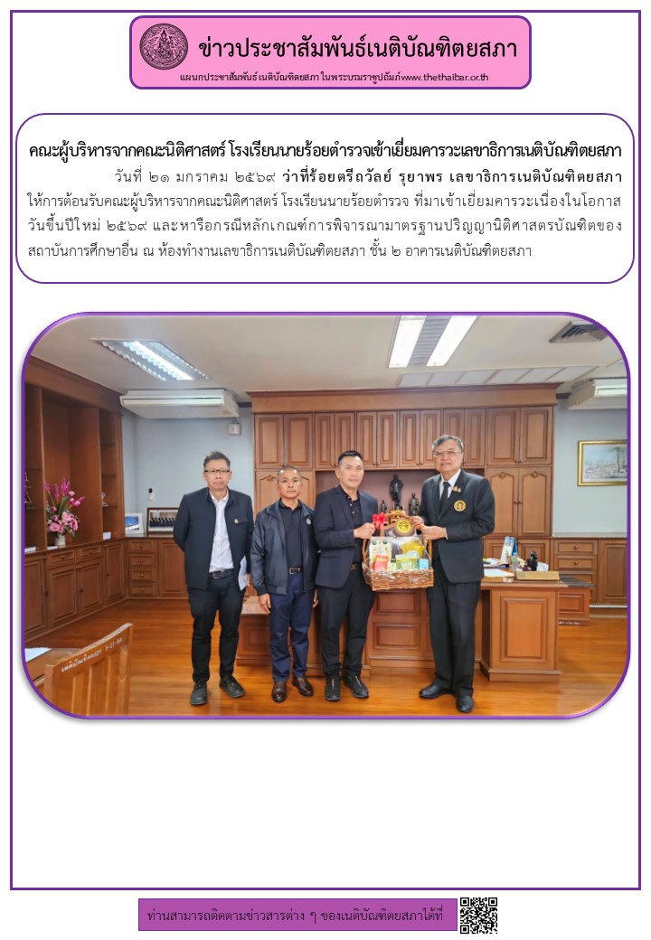 คณะผู้บริหารจากคณะนิติศาสตร์ โรงเรียนนายร้อยตำรวจเข้าเยี่ยมคารวะเลขาธิการเนติบัณฑิตยสภา