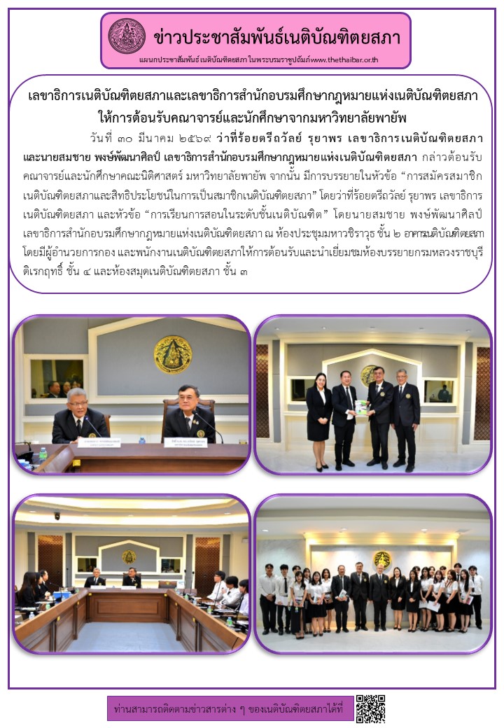 เลขาธิการเนติบัณฑิตยสภาและเลขาธิการสำนักอบรมศึกษากฎหมายแห่งเนติบัณฑิตยสภาให้การต้อนรับคณาจารย์และนักศึกษาจากมหาวิทยาลัยพายัพ